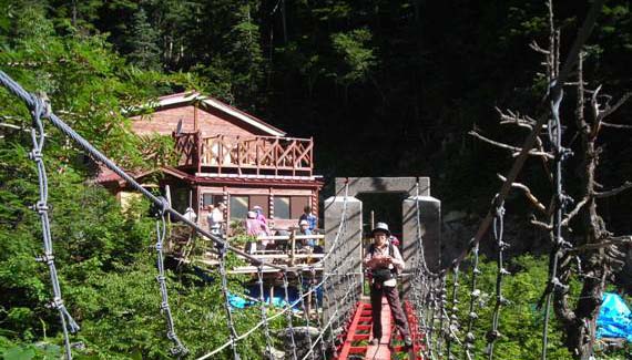 ン)小屋にザックを置き、着替えを持って温泉まで1キロ下る。