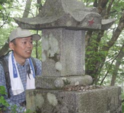 形が刻まれた詞に至る道には丁度カタクリの群生が実をつけていました。カタクリは木々