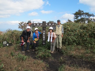 上へ着いた。ここも人で溢れている。昼食を摂り記念撮影。ガスの切れ間から稜線がはっ