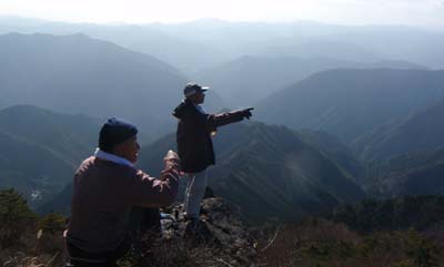 山の方を見れば、近くには、平家平、遠望は、………幾重にも連なる山々……はるか遠く南