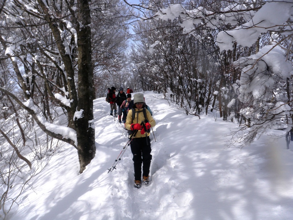 雪深くて登りが少し大変でしたが、天候に恵まれ山頂からの景色も良く、樹氷も見えて堪能