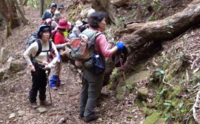 道です。40分程登るとヤッコソウの案内板があります。シイノ根に寄生する熱帯性植