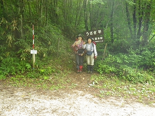 人ずつ渡り、一つ尾根を越えて「うさぎ平」の林道に出た。ここから、1時間