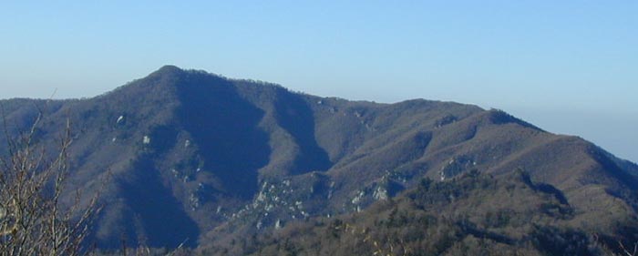 高丸山から見た雲早山 1495.9m。(マウスOUT) 西子山から見た雲早山、うっすらと雪(マウスOVER)